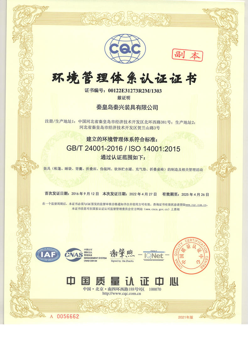 • 環(huán)境管理體系認(rèn)證證書(shū)